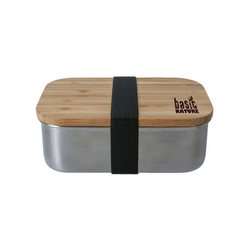 Hochwertige Lunchbox aus robustem Edelstahl. Ausgestattet mit einem edlem Bambusdeckel, der auch als praktisches Schneidebrett verwendet werden kann. Ideal geeignet für Butterbrote, Snacks oder Gemüsesticks. Ihre Mahlzeiten bleiben frisch und geschützt vor Schmutz und Insekten. Das elastische Stoffband sorgt für den sicheren Verschluss. Verwendbar als Brotdose für die Schule, Büro, Ausflug oder auch als Aufbewahrungsbox von Accessoires.