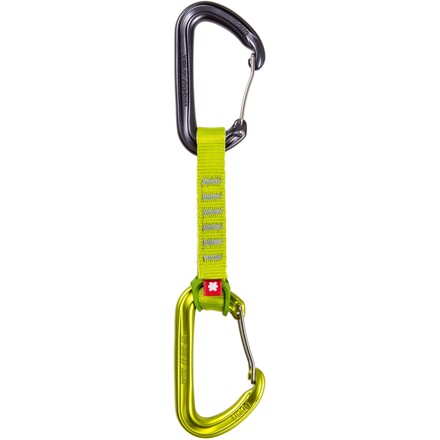 Details Ideal für Sport- und Alpinklettern; Drahtbügel verhindert ein Aufschnappen; friert bei alpinen Bedingungen nicht ein; leichte Hawk Wire Karabiner; 16mm Schlinge aus Polyester für hohe Haltbarkeit; unterer Karabiner durch ein Gummi fixiert