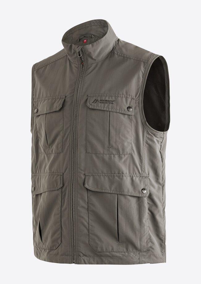 Als überaus praktisch beim Wandern, auf Trekkingtouren, aber auch im Alltag und in der Freizeit erweist sich diese multifunktionale Weste. In den zahlreichen geräumigen Taschen lassen sich viele nützliche Dinge verstauen und sind im Bedarfsfall schnell zur Hand. Das dryprotec Material transportiert Feuchtigkeit schnell nach außen und trocknet sehr rasch. Die integrierte Rückenventilation unterstützt Tragekomfort und Körperklima.